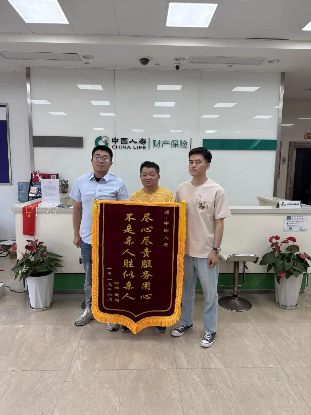 一面锦旗,承载着客户的感激与认可;一次理赔,彰显着国寿财险的责任与温度。2025年6月3日,沈先生专程来到国寿财险无锡市中心支公司,送上“尽心尽责服务用心,不是亲人胜似亲人”的锦旗,对公司高效暖心的理赔服务表达诚挚谢意。